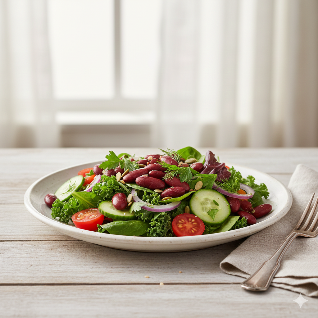 - 샐러드: 삶아 식힌 강낭콩을 샐러드에 넣어 단백질을 보강.