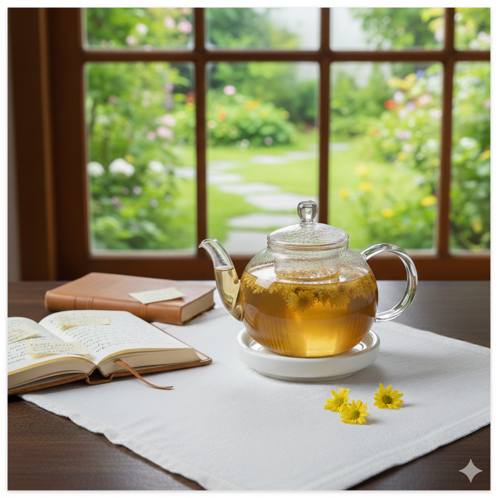 오늘은 따뜻한 국화차 한 잔으로 몸과 마음을 부드럽게 풀어보세요.